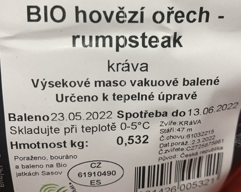 BIO Hovězí ořech - rumpsteak